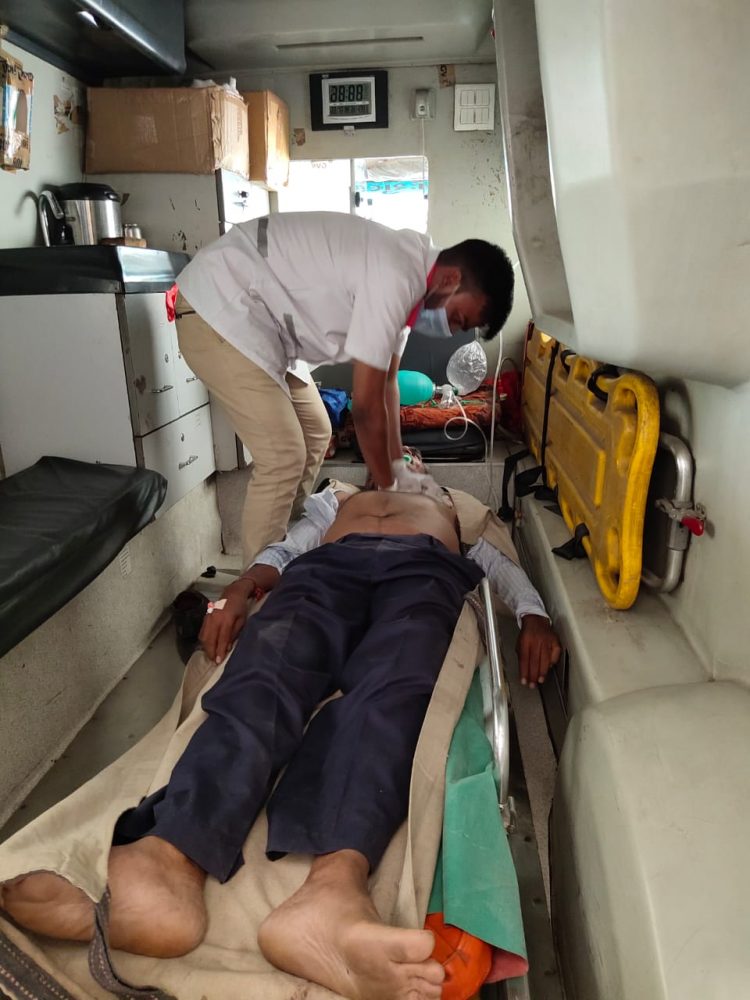 108 ને જાણ થતાં તાત્કાલિક રાંદેર લોકેશનના ઇએમટી શબ્બીરખાંન દર્દી પાસે પહોંચીને દર્દીને ચેક કરતા માલુમ પડ્યું કે દર્દી બેભાન હાલતમાં હતા અને તેમના હદયના ધબકારા બન્ધ હતા અને આંખની કિકી પણ રીએકશન નતી કરતી અને મોઠામાં ફીણ આવી ગયા હતા. પછી તાત્કાલિક ઈએમટી સબીર અને પાઇલોટ કરણ આહીર એ દર્દી ને CPR આપવાનું ચાલુ કર્યું દર્દી ને 10 મિનિટ સતત CPR આપ્યા બાદ દર્દીના હદય ના ધબકારા ફરીથી ચાલુ થયા સાથે સાથે દર્દીની છાતી પણ ઉપર નીચે થવા માંડી પછી તાત્કાલિક ઇએમટી સબીર એ દર્દીનું હવાનું માર્ગ બન્ધ હતું તેને ચાલુ કર્યું અને તાત્કાલિક સુરત જિલ્લાના પોગ્રામ મેનેજર ફયાજ પઠાણ સરને જાણ કરી અમદાવાદ 108 ના સેન્ટર પર બેઠેલા ફિજીસીયન ડોક્ટર ની સલાહ લઈને જરૂરી ઇન્જેક્શન આપી દર્દી ને નજીકની ખાનગી હોસ્પિટલમાં પહોંચાડવામાં આવેલ અને હાલ દર્દી ને સેલ્બી હોસ્પિટલવરમાં ICU માં દાખલ કરેલ છે સેલ્બી હોસ્પિટલના ઇમેર્જનસી ફિજીસીયન ડોક્ટર નીલમ એ જણાવેલ કે 108 ટિમ ની મહેનત થી કાકા બચી શક્યાં છૅ.કાકાને મેજર હાર્ટ હેટેક આવેલો છે આવા હેટેકમાં દર્દીને બચવાના ચાન્સીસ ઓછા હોય છે.