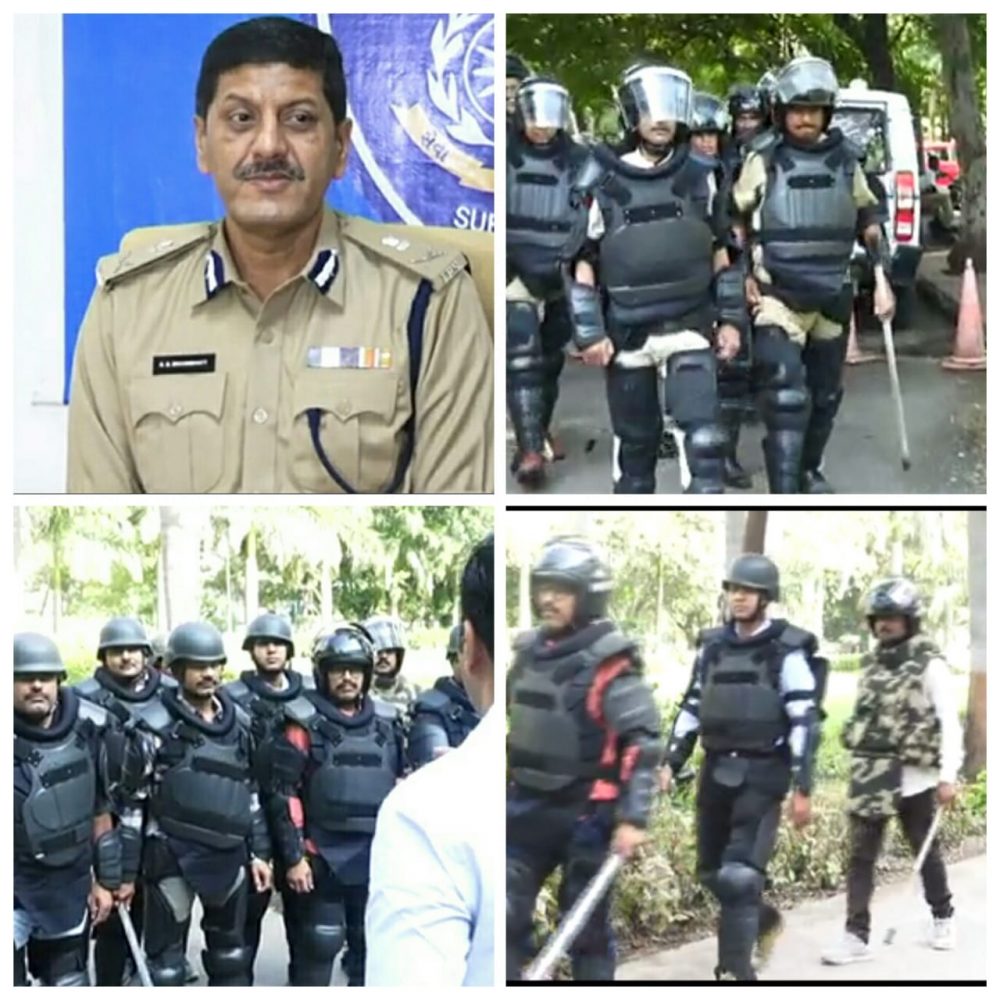 શહેર પોલીસ દ્વારા કુલ 8 સંવેદનશીલ વિસ્તારમાં ખાસ સુરક્ષા વ્યવસ્થા ગોઠવવામાં આવી છે.જ્યાં દરેક સંવેદનશીલ વિસ્તારમાં 1ACP, 2PI, 25 પોલીસકર્મીઓ તૈનાત કરવામાં આવ્યા છે. કુલ 3 SRP ની ટિમ અને 1 કવીક રીસ્પોન્સની ટીમ સંવેદનશીલ વિસ્તારમાં તૈનાત કરવામાં આવી છે. આ સાથે કન્ટ્રોલરૂમમાં 1 SRP ની ટિમ, 1 PI, 50 પોલીસ કર્મીઓ સ્ટેન્ડબાય મુકવામાં આવ્યા છે. સુરત ક્રાઇમ બ્રાન્ચ,એસઓજી તેમજ પીસીબી શાખાના પોલીસ કર્મચારીઓને પણ સતત પેટ્રોલિંગ સ્ટેન્ડ બાય મુકવામાં આવ્યા છે અને ખાસ સંવેદનશીલ વિસ્તારમાં સતત પેટ્રોલિંગ કરાવવામાં આવી રહ્યું છે.આ ઉપરાંત સોસીયલ મીડિયા પર શહેર પોલીસની બાઝ નજર છે.કોઈ પણ ભડકાઉ મેસેજ કરતા તત્વોને ઝડપી પાડવા પોલીસ સતર્ક છે.શહેરમાં શાંતિ અને સલામતી જળવાય રહે તેમજ કાયદો-વ્યવસ્થા બની તેવા પ્રયાસ સુરત પોલીસ દ્વારા કરવામાં આવી રહ્યા છે.
