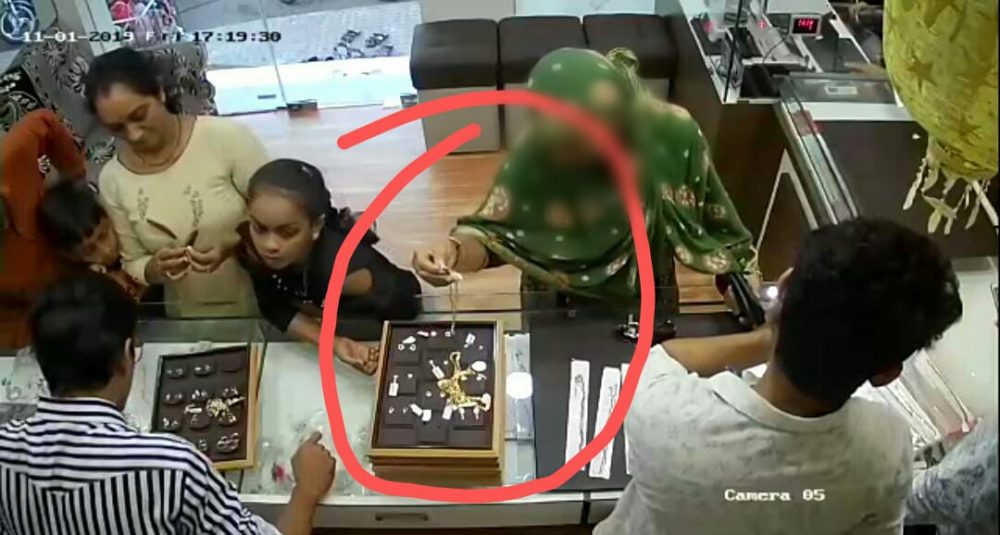 આજરોજ સુરત શહેરના સરથાણા વિસ્તારમાં શ્રી હરિ જવેલર્સ શોપમાં દુકાનના સ્ટાફની નજર ચૂકવીને એક મહિલાએ સોનાની ચેનની ઉઠાંતરી કરી હોવાની સમગ્ર ધટના સીસીટીવી માં કેદ થતાં જવેલર્સના માલિક દ્વારા સરથાણા પોલીસમાં ફરિયાદ નોંધાવી છે. સોનાની ચેન 30 ગ્રામ વજનની હોય જેની કિંમત એક લાખ આઠ હજારની ચોરીની ધટના સીસીટીવી કેમેરામા કેદ થઈ હતી.