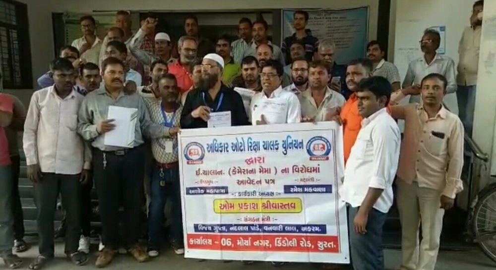 સુરતમાં ઓટોરિક્ષા ચાલકોને ઇ-મેમો અને પોલીસ દ્વારા ખોટી રીતે થતી કનડગત બન કરી ઇ-મેમોને માફ કરવાની માંગણી કરતું આવેદનપત્ર અપાયું.