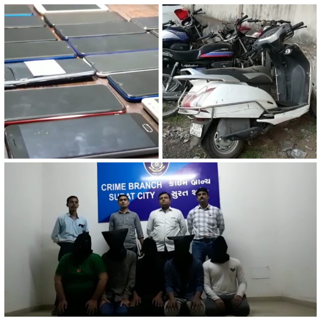 સુરત શહેર માં મોજ શોખ ખાતર યુવાનો કરતાં મોબાઈલ ફોન અને પર્સ ની ચોરી ના ૧૩ ગુના ઉકેલાયા પાંચ યુવાન એ કર્યા આ ગુના