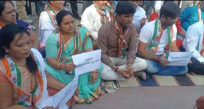 અમદાવાદ ખાતે તાજેતરમાં એબીવીપી અને એનએસયુઆઇ વચ્ચે થયેલી બબાલ અંગે સુરત કોંગ્રેસ દ્વારા ધરણાં પ્રદર્શનનું આયોજન કરવામાં આવ્યું હતું. સુરતના ચોક બજાર ગાંધી પ્રતિમા પાસે સુરત કોંગ્રેસના કાર્યકર્તાઓ અને અગ્રણીઓ આજરોજ એબીવીપીના વિરોધમાં ધરણાં કર્યા હતા. સુરત કોંગ્રેસના કાર્યકર્તાઓએ એબીવીપી મુર્દાબાદ અને હાય-હાયના નારા સાથે બુલંદ અવાજે સૂત્રોચ્ચાર કરી પ્રચંડ વિરોધ નોંધાવ્યો હતો.