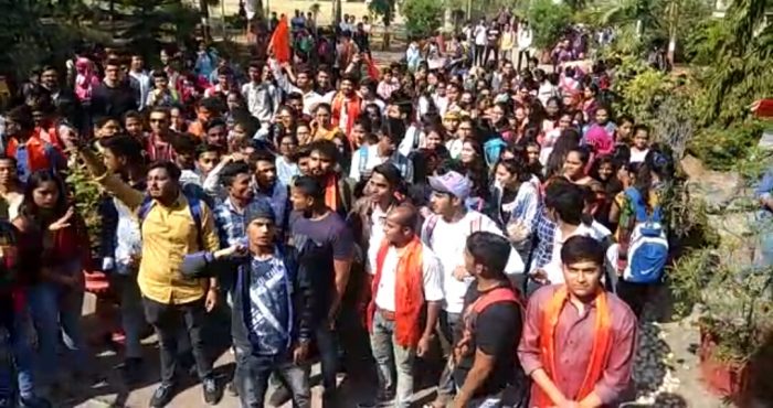 વીર નર્મદ દક્ષિણ ગુજરાત યુનિવર્સિટી ખાતે એબીવીપીની આગેવાનીમાં વિદ્યાર્થીઓએ કર્યા દેખાવો. B.com sem-5 નાં વિદ્યાર્થીઓએ માર્કસમાં અસંતોષ મામલે કર્યા દેખાવો 4 વિષયમાં યોગ્ય માર્ક્સ આપવામાં આવ્યા ન હોવાનો વિદ્યાર્થીઓનો આક્ષેપ ઘણા કિસ્સામાં બે-ત્રણ માર્કસ પણ ગ્રેસ કરાયા નથી. જેથી વિદ્યાર્થીઓનું ભાવી બગડી શકે તેમ છે.વિદ્યાર્થીઓએ માર્કસ બાબતે યોગ્ય નિર્ણય લેવા સત્તાધીશોને રજુઆત કરી. યુનિવર્સિટીના સત્તાધીશો જો વિદ્યાર્થીઓના હિતમાં માકર્સ નહી ઉમેરે તો અખિલ ભારતીય વિદ્યાર્થી પરિષદ આ મામલે આંદોલન કરવાની ચીમકી ઉચ્ચારી છે.