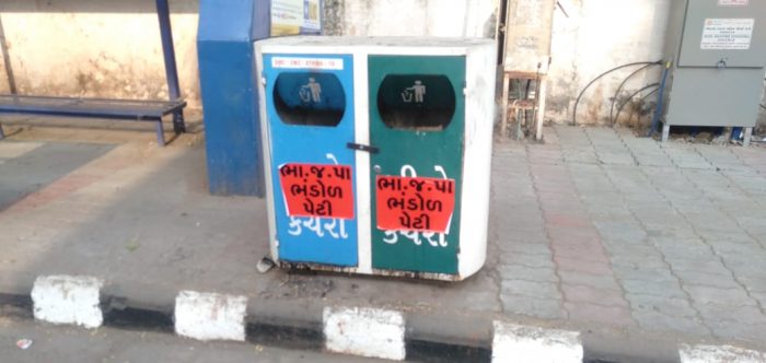 સુરત : ડસ્ટબિનો પર ભાજપ ભંડોળ પેટીના પોસ્ટરો લગાવવામાં આવતા વિવાદ