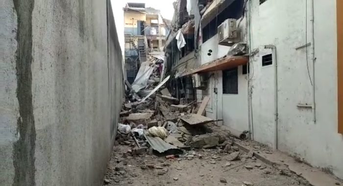 સુરત કતારગામ વિસ્તારમાં આવેલા વસ્તાદેવડી રોડ પર ચાર માળના બિલ્ડીંગનો સ્લેબ બેસી ગયો હતો. બિલ્ડીંગના એક ભાગનો સ્લેબ ધરાશાયી થતાં કેટલાંક લોકો દટાયા હોવાની આશંકા વ્યક્ત કરાઈ રહી હતી.