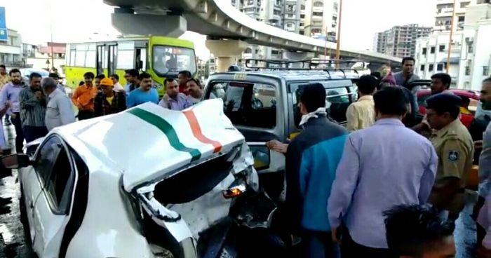સુરતના જીલ્લાનાં બ્રિજ પર પૂર ઝડપે આવેલી કારએ કાબુ ગુમાવતા 2 કારને પાછળથી ટક્કર મારી હતી જેમાં બંને કારને મોટું નુકશાન થવા પામ્યું હતું. સદનસીબે કોઈ જાનહાનિ નોંધાવા પામી ન હતી. કારમાં સવાર લોકોને સામાન્ય ઇજાઓ પહોંચી હતી. બનાવ અંગેની જાણ થતા પોલીસ ઘટના સ્થળે દોડી ગઈ હતી અને ટ્રાફિક નિયમન કર્યું હતું. જીલ્લાનાં બ્રિજનો વિચત્ર વળાંકને લઈ બ્રિજ પર અનેક વાર અકસ્માત સર્જાઈ ચૂકયા છે અને લોકોને જીવ ગુમાવાનો વારો પણ આવ્યો છે.