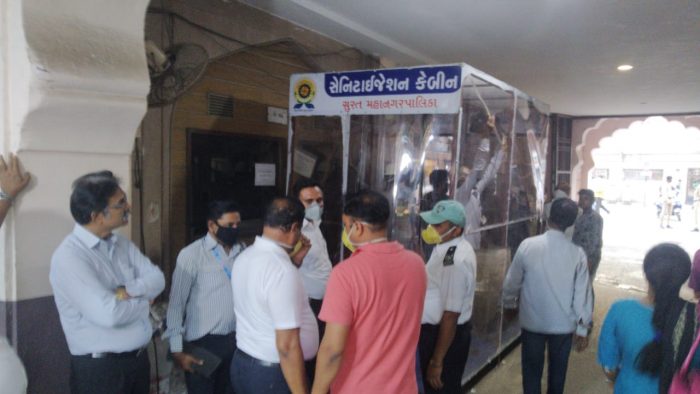 કોરોના વાઈરસને લઈને પાલિકાના ફાયરબ્રિગેડ દ્વારા સેનિટાઈઝ કેબિન બનાવવામાં આવી છે. ફાયરબ્રિગેડ દ્વારા બનાવવામાં આવેલી સેનિટાઈઝ કેબિનને શહેરની ત્રણ હોસ્પિટલ બહાર મુકવામાં આવશે. જેથી હોસ્પિટલમાં પ્રવેશનાર તબીબથી લઈને દર્દી અને તેના સંબંધીઓ ગણતરીના સમયમાં જ સેનિટાઈઝ થઈને બહાર નીકળશે. ફાયરબ્રિગેડના ઓફિસરે જણાવ્યું હતું કે, સેનિટાઈઝ કેબિનમાં પંખાનો તથા વિવિધ સેનિટાઈઝ કરતાં કેમિકલ એ રીતે પ્રસરાવવામાં આવી રહ્યાં છે કે જેથી કરીને વ્યક્તિ આ કેબિનમાંથી પસાર થાય એટલે તરત જ સેનિટાઈઝ થઈ જશે. હોસ્પિટલમાં અસંખ્ય લોકો રોજે રોજ આવતાં હોય છે. જેમાં માત્ર હાથ સાફ કરાવવા કરતાં આખા શરીરને સેનિટાઈઝ કરવામાં આવે તો કોરોનાને આગળ વધતો અટકાવી શકાય.