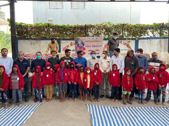 આજરોજ વરાછા વિસ્તારમાં સામાજિક સેવાકીય પ્રવૃત્તિ કરતી રોટરી ક્લબ સુરત ઇસ્ટ દ્વારા કોર્પોરેશનની શાળા નંબર 99 – કવિવર શ્રી રવીન્દ્રનાથ ટાગોર, કુમાર શાળા તેમજ શાળા નબર 100 – કવિ ઉમાશંકર જોશી પ્રાથમિક શાળા, કન્યાશાળાનાં ધોરણ 1 થી 4 ના કુલ 445 જેટલા બાળકોને ઉચ્ચ ગુણવત્તાવાળા સ્વેટરનું વિતરણ કરવામાં આવેલ. હાલમાં શિયાળાની શરૂઆતમાં ઠંડી પડવાની શરૂઆત થઇ છે ત્યારે આ સ્વેટર બાળકોને ઠંડીથી રક્ષણ આપશે. આ સંપૂર્ણ કાર્યક્રમનું આયોજન પ્રોજેક્ટ ચેરમેન રો. સંજય ચોવટિયા અને કો.ચેરમેન શૈલેશ વઘાશિયા દ્વારા કરવામાં આવેલ. આ કાર્યક્રમમાં સ્થળ પસંદગી રો.કલ્પેશ બલર દ્વારા કરવામાં આવેલ. ગરીબ બાળકોને ચોકલેટનો સ્વાદ ચાખવા મળે તે માટે ચોકલેટનું અનુદાન રો.જયસુખભાઈ ગુંદરણીયા તરફથી મળેલ અને દરેક બાળકોને ગુણવત્તાવાળી ચોકલેટનું વિતરણ કરેલ.