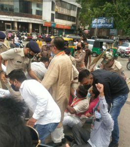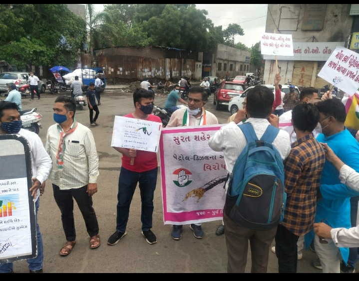 સુરત પૂર્વ વિધાનસભા આયોજીત પેટ્રોલ, ડીઝલ અને ગેસ ના અસહ્ય અને બેકાબુ થયેલાં ભાવવધારા ના વિરોધ માં જે આજ રોજ તારીખ ૧૨-૦૬-૨૦૨૧ ના રોજ રૃષબ્ પેટ્રોલપંપ ની બાજુમાં રીંગરોડ પર વિરોધ પ્રદર્શિત કરવાનું કાર્યક્રમ રાખવામાં આવેલ હતું તેમાં ખૂબ જ મોટી સંખ્યા માં કોંગ્રેસી જનો હાજર રહી સૂત્રોચાર કર્યો ત્યાર પછી સલાબતપુરા પોલીસે અટકાયત કરી હતી.