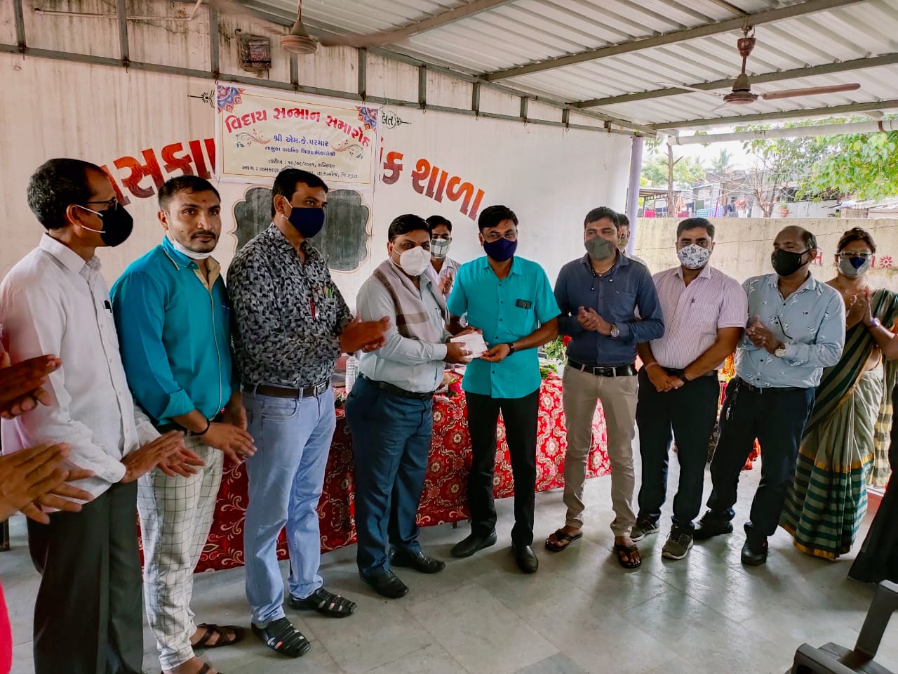 સુરત જિલ્લાના કામરેજ તાલુકા પ્રાથમિક શિક્ષક સંઘ દ્વારા તાલુકા પ્રાથમિક શિક્ષણાધિકારી મનીષભાઈ પરમાર સાહેબને વર્ગ-૨ માં તિલકવાડા, જીલ્લો નર્મદા ખાતે બઢતી મળતાં લસકાણા પ્રાથમિક શાળા ખાતે સન્માન વિદાય સમારંભ સરકારની કોરોના ગાઈડલાઇન મુજબ અને સંપૂર્ણ SOP ના પાલન સાથે યોજવામાં આવ્યો. જેમાં કામરેજ તાલુકાના તમામ મુખ્ય શિક્ષકો હાજર રહ્યા હતા.