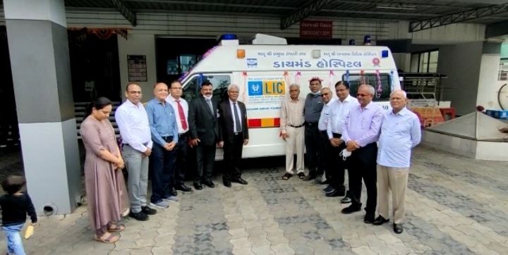 સુરત શહેરની જનતાના આરોગ્યની સંભાળ માટે હંમેશા પ્રયત્નશીલ ડાયમંડ હોસ્પિટલને આપના દ્વારા તાત્કાલિક સમાચાર હેતું મળેલ એમ્બ્યુલન્સની અમૂલ્ય ભેટને સ્વીકારતા ધન્યતાની લાગણી અનુભવી તેમજ હોસ્પિટલના ટ્રસ્ટી દ્વારા એલ.આઇ.સી. ના આ માનવતા સભર યોગદાન અને સહયોગ બદલ આભાર વ્યક્ત કર્યો હતો અને હોસ્પિટલના હોદ્દેદારોએ આભાર પત્ર અર્પણ કર્યું હતું.