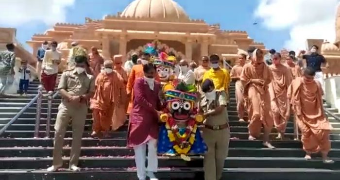 આજે અષાઢી બીજ છે ત્યારે ગુજરાતનાં વિવિધ જિલ્લામાં તેની ઉજવણી કરવામાં આવે છે અને રથયાત્રા કાઢવામાં આવે છે ત્યારે આ વખતે કોરોનાનાં કારણે ગુજરાતમાં રથયાત્રા કાઢવામાં નથી આવી રહી. ત્યારે ધ્રાંગધ્રામાં પણ સંસ્કાર ધામ ગુરુકુળ દ્વારા આ વખતે રથયાત્રા કાઢવામાં નથી આવી. સરકારનાં નિયમ મુજબ જ મંદિરમાં જ પૂજા વિધિ તેમજ મંદિરનાં પરિસરમાં જ આ ઉત્સવની ઉજવણી કરવામાં આવી હતી. આ કાર્યક્રમમાં સંતો તેમજ લિમિટ સંખ્યામાં ભક્તો હાજર રહ્યા હતા. આ કાર્યક્રમમાં આવનાર ભકતોને પણ મંદિરમાં પ્રવેશદ્વાર ઉપર માસ્ક પહેરેલ વ્યક્તિને જ પ્રવેશ આપવામાં આવતો હતો સાથે સેનેટાઈઝર કરવામાં આવતું હતું. ત્યારબાદ મંદિરમાં પણ સોસીયલ ડિસ્ટન્સ પણ રાખવામાં આવ્યું હતું. છેલ્લા સાત વર્ષથી નીકળતી રથયાત્રા આ વર્ષે સાવ સાદગી પૂર્વક ઉજવણી કરવામાં આવી હતી. દેશની રક્ષા કરતા જવાનો જે શહીદ થયા છે. તેમના આત્માને ઈશ્વર શાંતિ આપે દેશની સુરક્ષા સારી રહે અને દેશ અને વિશ્વમાંથી કોરોના વિદાય લે તેવી ભગવાન પાસે પ્રાર્થના સંતો દ્વારા કરવામાં આવી હતી.