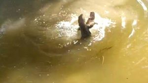 લીંબડી તાલુકાનાં ઘાઘરેટીયા ગામ પાસે આવેલ રામદેવપીરનાં મંદિર પાસે એક પાણીનું ભરેલ ઓકળામાં 2 ઘો એકબીજા સાથે મસ્તી કરી રહી છે ત્યારે આ નજારો આશરે અડધી કલાક સુધી ચાલ્યો હતો. ત્યારે આ દુર્લભ વિડીયો કેમેરામાં કેદ થઇ ગયેલ બંને ઘો પાણીમાંથી અડધી બહાર આવી એક બીજાને પકડી રમત રમી રહી છે અને પાણીમાં ન્હાવાની પણ મજા માણી રહી છે જેમ કોઈ મિત્ર એકબીજા સાથે મોજ મસ્તી કરી અને આનંદ માણતા હોય તેમ આ બંને જીવ પણ મનુષ્ય માફક પાણીમાં રમત રમી રહી છે ત્યારે આ વિડીયો અચાનક જ કેમેરામાં કેદ થઈ ગયો હતો.