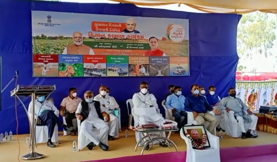 સુશાસન દિવસની ઉજવણીના ભાગરૂપે સાત પગલાં ખેડુત કલ્યાણ અંતર્ગત ચાલુ વર્ષ-૨૦૨૦-૨૧ માં ખેડુતોને સંપૂર્ણ દેશી ગાય આધારીત પ્રાકૃતિક ખેતી કરતા ખેડૂત કુટુંબને એક ગાય માટે નિભાવ ખર્ચમાં સહાય આપવાની યોજના, પ્રાકૃતિક કૃષિ પધ્ધતિ દ્વારા જીવામૃત બનાવવા સારુ લાભાર્થીઓને નિદર્શન કીટમાં ૭૫ ટકા સહાયની યોજના, કૃષિ ઉત્પાદનોમાં પરિવહન માટે મીડીયમ સાઇઝના ગુડ્ઝ કેરેઝ વાહનની ખરીદી ઉપર નાણાંકીય સહાય આપવાની કિસાન પરિવહન યોજના, ફળ અને શાકભાજીનો બગાડ અટકાવવા નાના વેચાણકારોને વિનામૂલ્યે છત્રી/ શેડ કવર પુરા પાડવાની યોજના, ખેડુતોને પાક સંગ્રહ સ્ટ્રક્ચર બનાવવા માટે સહાય આપવાની મુખ્યમંત્રી પાક સંગ્રહ સ્ટ્રક્ચર યોજના, સર્વગ્રાહી યોજનાઓના લાભાર્થીઓને સાધન સામગ્રી સાથે સહાય વિતરણ તેમજ પ્રધાનમંત્રી કિસાન સન્માન નિધિ હેઠળ પ્રધાનમંત્રીશ્રી દ્વારા બટન દબાવીને આશરે ૯ કરોડ ખેડુતોના બેંક એકાઉન્ટમાં સીધી આશરે રૂ. ૧૮,૦૦૦ કરોડની રકમ ખેડુતોને આપવામાં આવશે.