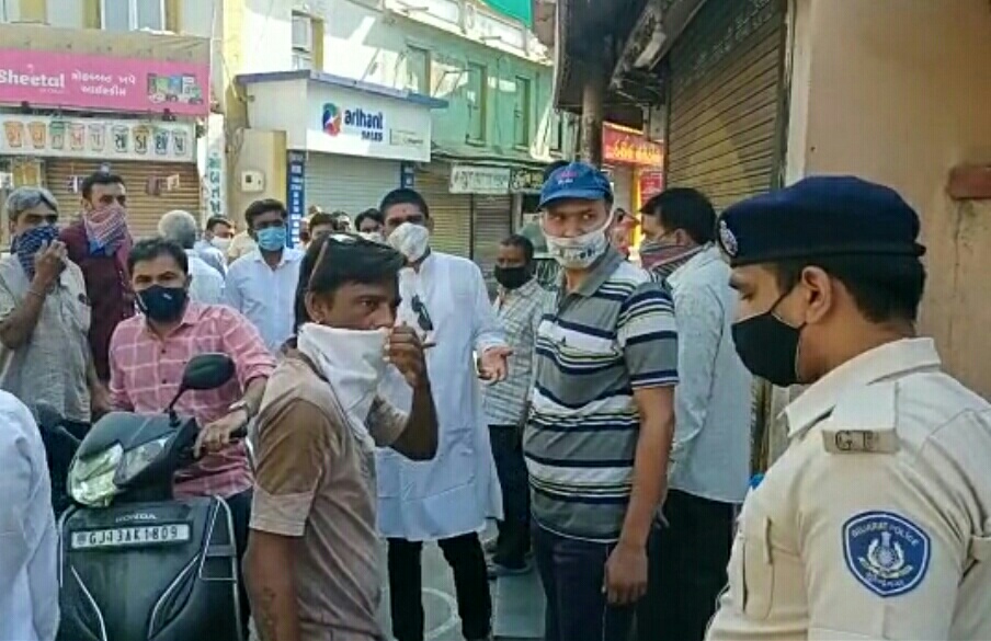 લીંબડી તાલુકામા દિન-પ્રતિદિન કોરોના પોઝિટિવ કેસ વધી રહ્યાં છે ત્યારે લીંબડી વેપારી એસોસિયેશન દ્વારા લીંબડી 6 દિવસ સુધી લોકડાઉન આપવામાં આવ્યું છે ત્યારે આજે લોકડાઉનના પહેલાં જ દિવસે માનવ અધિકાર નિગરાની સમિતિના તાલુકા ઉપપ્રમુખ ડીયુ પરમારે લીંબડી વેપારી એસોસિયેશનના પ્રમુખના ગોડાઉનનુ શટર ખુલતાં બબાલ મચાવી હતી