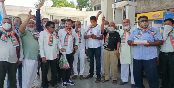 લીંબડી કોંગ્રેસ દ્વારા પેટ્રોલના ભાવ વધારા સામે એક અલગ રીતે વિરોધ પ્રદર્શન કરવામાં આવ્યું.