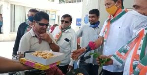 હાલ પેટ્રોલના ભાવમાં ધરખમ વધારો થવા પામ્યો છે ત્યારે કોંગ્રેસ દ્વારા પેટ્રોલના ભાવમાં ધરખમ વધારા સામે વિરોધ પ્રદર્શન કરવામાં આવ્યુ છે ત્યારે આજે લીબડી ગામ વચ્ચે આવે પેટ્રોલ પંપ ખાતે કોંગ્રેસી કાર્યકર્તાઓ અને હોદ્દેદારો દ્વારા પેટ્રોલના ભાવ વધારા સામે સરકારનો વિરોધ સૂત્રોચ્ચાર સાથે કરવામાં આવ્યો હતો જેમાં પેટ્રોલ પંપ પર આવતા ગ્રાહકોને કોંગ્રેસ દ્વારા કટાક્ષતાથી એક ગુલાબનું ફૂલ અને મોંમાં પેંડો ખવડાવી વિરોધ પ્રદર્શન કરવામાં આવ્યો હતો