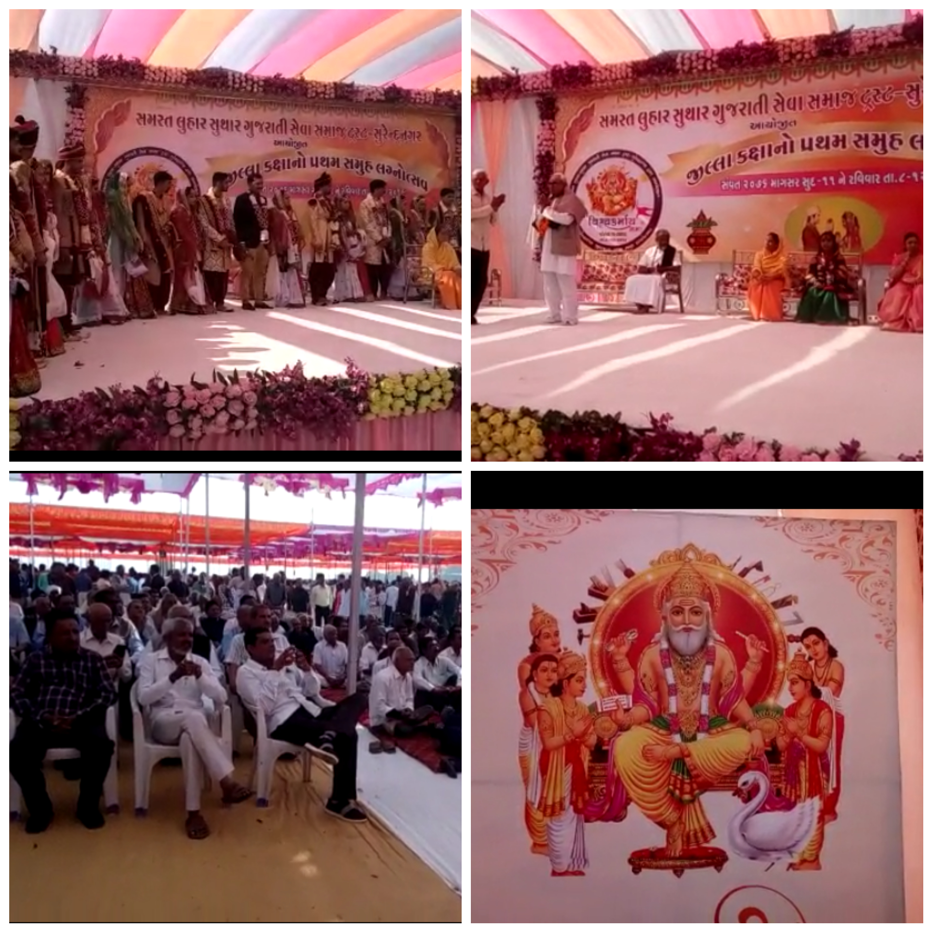 સુરેન્દ્રનગર ખાતે લુહાર સુથાર જ્ઞાતિ નો જિલ્લા કક્ષાનો પ્રથમ સમૂહ લગ્નોત્સવ યોજાયો