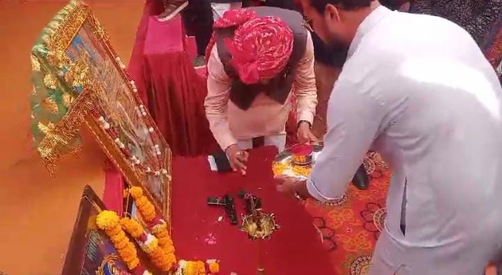 લીંબડીમાં વિજયાદશમી પર્વ નિમિત્તે શસ્ત્ર પૂજન કરવામાં આવ્યું