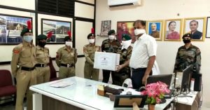 સુરેન્દ્રનગર એન.સી.સી. નાં સુબેદાર સુખદેવસીંઘ, સુરેશકુમાર, પટેલ હીતેષકુમાર, તેમના એન.સી.સી. કેડીટનાં 800 સ્ટુડન્ટએ એક અઠવાડિયામાં બનાવેલા માસ્ક નંગ 500 આજરોજ સુરેન્દ્રનગર નગરપાલિકા પ્રમુખ વીપીનભાઇ ટોલીયાને અર્પણ કર્યા હતાં.તેમજ નાગરીકોમાં આ કોરોના વાયરસની વિશ્વ મહામારીનાં લીઘે માસ્ક પહેરીને બહાર નીકળવુ, તેમજ સોશીયલ ડીસ્ટન જાળવવુ, વારંવાર હાથ ધોવા જેવી સમજ જીલ્લા તથા શહેરનાં નાગરીકોને એક ઇન્ટરવ્યુમાં એન.સી.સી. ના સ્ટુડન્ટ જયદેવ વ્યાસ એ આપી હતી. તેમજ આ અગાઉ એન.સી.સી. કેડીટનાં સ્ટુડન્ટ દ્વારા બનાવામાં આવેલા માસ્ક તેમને આંબેડકર ચોકમાં વિતરણ કર્યા હતાં. તે બાદ આજરોજ સુરેન્દ્રનગર નગરપાલિકાએ આવીને નગરપાલિકા પ્રમુખ વીપીનભાઇ ટોલીયાને માસ્ક અર્પણ કર્યા હતાં.