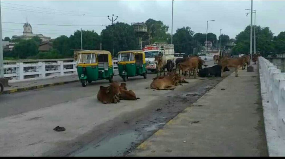 લીંબડીનો ઉટડી પુલ બન્યો આખલાનો અખાડો .