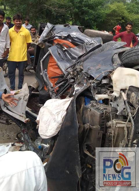 વડોદરાના વાઘોડિયાના હાલોલ રોડ પર ખંડીવાડા પાસે અકસ્માત સર્જાયો જે બનાવની પ્રાપ્ત વિગત અનુસાર પુરપાટ ઝડપે આવતી ઇકો કારનું ટાયર ફાટતા સ્ટેરીંગ પરનો કાબુ ડ્રાઇવર એ ગુમાવ્યો હતો જેથી રોડની બીજી સાઈડે આવતી આઈસર સાથે ઇકો કારનો અકસ્માત સર્જાયો હતો. અકસ્માતમા બે વ્યક્તિના ઘટના સ્થળે મોત નીપજ્યા હતા જ્યારે આશરે પાંચ જેટલા ગંભીર ધાયલોને વડોદરા SSG હોસ્પીટલ ખસેડાયા છે.