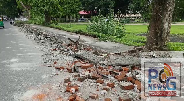 આ વિશે કંપાઉન્ડના ટ્રસ્ટીના જણાવ્યા પ્રમાણે, કંપાઉન્ડની દિવાલ અંદાજે 25 થી 30 વર્ષ જૂની છે. છેલ્લા ઘણા સમયથી તે જર્જરીત હાલતમાં હતી. જેથી અમે નક્કી કર્યું હતું કે જૂની દિવાલ તોડીને અહિંયા નવી દિવાલ બનાવવામાં આવશે. પરંતુ વરસાદના કારણે આ કામગીરી અટકી ગઈ હતી અને તાજેતરમાં પડેલા ભારે વરસાદને પગલે આજે વહેલી સવારે 6 વાગ્યે આ દિવાલ પડી ગઈ છે. વરસાદને કારણે આશરે 200 મીટર જેટલી દિવાલ ધરાશાયી થઈ છે. જોકે આ સમયે કોઈ પણ વ્યક્તિ હાજર ન હોવાથી મોટા જાનહાની ટળી ગઈ છે.