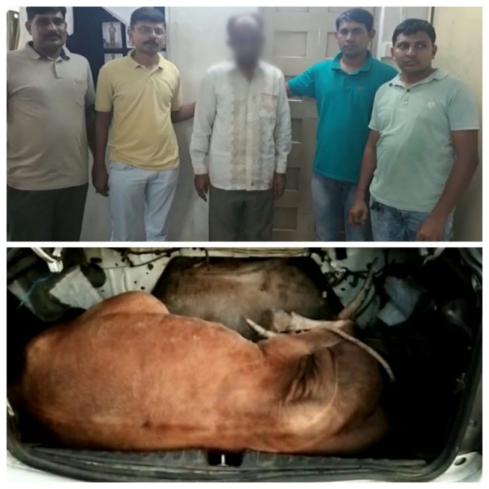 ગૌ વંશની તસ્કરી કરી હેરાફેરી કરવાની મળેલ બાતમીના આધારે વડોદરા એલ.સી.બી સાવલી વિસ્તારમાં સતર્કતા પૂર્વક વોચમાં હતી તે દરમ્યાન વડોદરા સાવલિના ખાખરીયા કેનાલ પાસેથી ઇન્ડિકા માઝા કારમાંથી ક્રૂરતા પૂર્વક બાંધીને લઈ જવાતા જ ગૌવંશને બચાવી લઈ કતલખાને લઈ જતાં બે પૈકી એકની ફિલ્મી ઢબે પીછો કરી પોલિસે પકડી પાડી ધરપકડ કરી છે જ્યારે અન્ય એક આરોપી ફરાર થઈ જવામાં સફળ રહ્યો છે. ઇજાગ્રસ્ત ગૌ વંશને પોલીસે સારવાર કરાવી મુક્ત કરેલ છે.