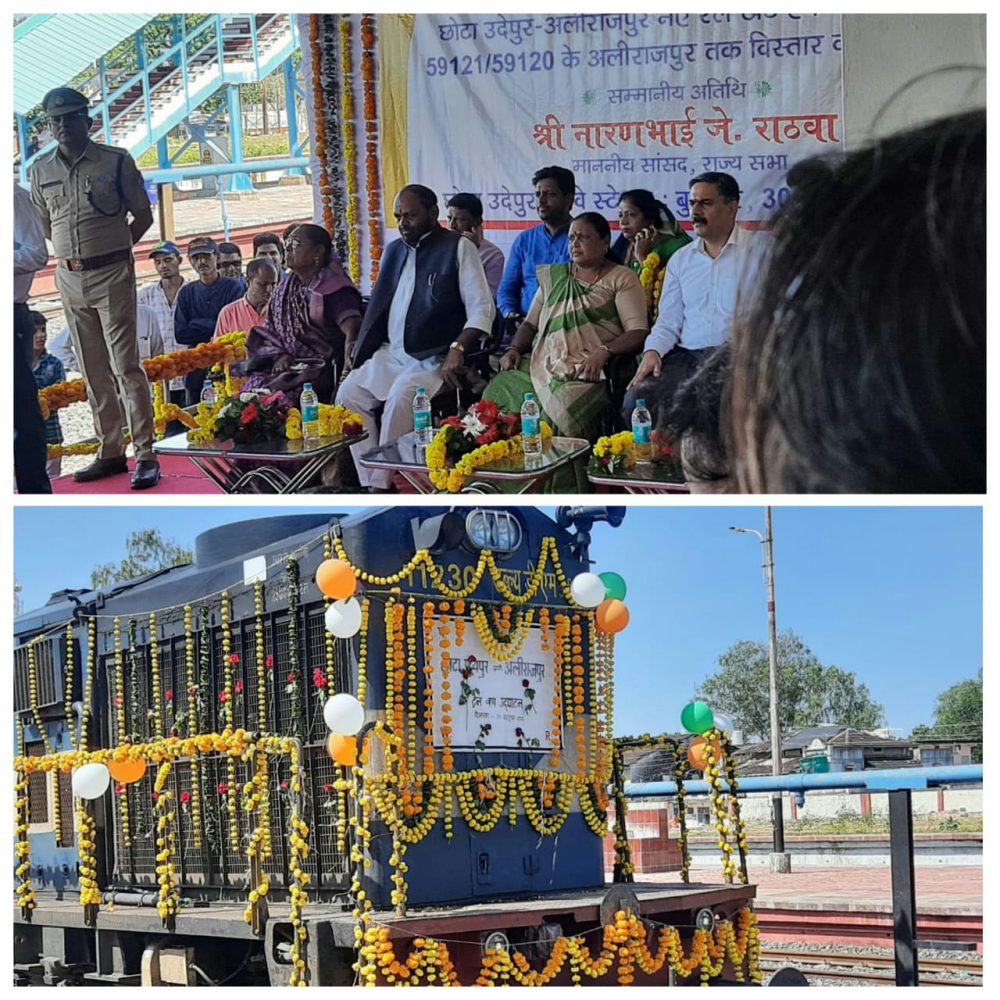 વડોદરા (પ્રતાપનગર)થી છોટાઉદેપુર ની રેલ્વે ને મધ્યપ્રદેશ ના અલીરાજપુર સુધી લંબાવવામાં આવતા ગુજરાતના છોટાઉદેપુર અને એમ.પી.ના અલીરાજપુર ના વિસ્તારો આજથી રેલ્વે સુવિધા થી જોડાયા છે.આજરોજ તા.૩૦ મી ઓકટોબર નારોજ આ રેલવે ને છોટાઉદેપુર થી અલીરાજપુર સુધી દોડાવવાનો પ્રારંભ થયો.ત્યારે આજે બપોરે છોટાઉદેપુર આવેલ ટ્રેન નું નગરજનો એ સ્વાગત કર્યુ હતું.છોટાઉદેપુર રેલવે સ્ટેશન પર આયોજિત કાર્યક્રમ માં છોટાઉદેપુર ના સાંસદ ગીતાબેન રાઠવા અને રાજ્યસભાના સભ્ય નારણભાઇ રાઠવા એ છોટાઉદેપુર થી અલીરાજપુર જતી ટ્રેન ને વિદાય આપી હતી.ઉલ્લેખનીય છેકે અલીરાજપુર ને રેલવે સુવિધા મળતા સમગ્ર નગર આનંદ ના હીલોળે ચઢ્યુ હતુ.નગરજનો ટ્રેન ના સ્વાગતમાં રેલવે સ્ટેશન પર ઉમટી પડ્યા હતા.છોટાઉદેપુર અને અલીરાજપુરના વિસ્તારોને સાંકળતી આ આદિવાસી પટ્ટીને રેલવે સવલત મળતા એક ઉમદા સુવિધાનો વિકાસ થયેલો ગણી શકાય.આ ટ્રેન અલીરાજપુર બપોરના ૧-૪૦ જેવા સમયે પહોંચશે અને ત્યાંથી સાંજના ૪-૧૫ વાગ્યે પરત ફરવા ઉપડશે.અને સાંજના ૭-૩૫ લગભગ વડોદરા પહોંચશે.છોટાઉદેપુર સુધી તો રેલવે ચાલતી હતી.પરંતુ હવે છોટાઉદેપુર થી ૪૯ કી.મી.દુર આવેલા મધ્યપ્રદેશ ના અલીરાજપુર સુધી આ રેલવે વિસ્તારવામાં આવતા આ બંને જિલ્લાના આદિવાસી વિસ્તારોનો બાકી રહેલો કેટલોક વિકાસ પણ શક્ય બની શકશે.હમણા આ રેલવે એકજ સમય અલીરાજપુર માટે દોડશે.પરંતુ થોડા સમયમાં આ રેલવે સેવા અંતર્ગત અલીરાજપુર જવા માટે ત્રણ સમય ટ્રેન દોડાવાશે,એમ પ્રાપ્ત માહિતી મુજબ જાણવા મળ્યુ છે.છોટાઉદેપુર ની આ રેલવે મધ્યપ્રદેશ સુધી લંબાવાતા આ આદિવાસી વિસ્તારની સવલત માં સુંદર વધારો થયો છે.