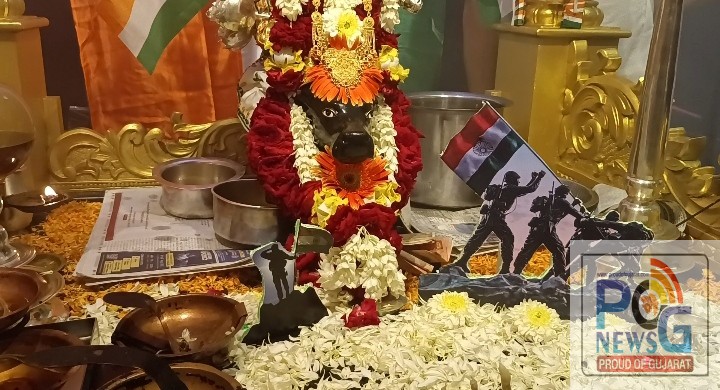 વડાપ્રધાન નરેન્દ્ર મોદી દ્વારા હર ઘર તિરંગાનું આહવાન કરવામાં આવ્યું છે જેને લઈ સમગ્ર દેશ તિરંગા રંગેમાં રંગાયું છે અને દેશમાં દેશ ભક્તિના માહોલ જોવા મળી રહ્યો છે. સરકાર દ્વારા તિરંગા લહેરાવવાના નિયમો હળવા કરાયા છે ત્યારે દરેક દેશવાસીએ પોતાના ઘર પર તિરંગા લહેરાવ્યાં છે ત્યારે વડોદરાનો વાડી સ્થિત અતિ પ્રાચીન વાડી શનિદેવ મંદિરને તિરંગાથી અને દેશના સ્વતંત્રવીરોની પ્રતિકૃતિથી તેમજ દેશની સેનાની પ્રતિકૃતિથી શણગારવામાં આવ્યું છે.