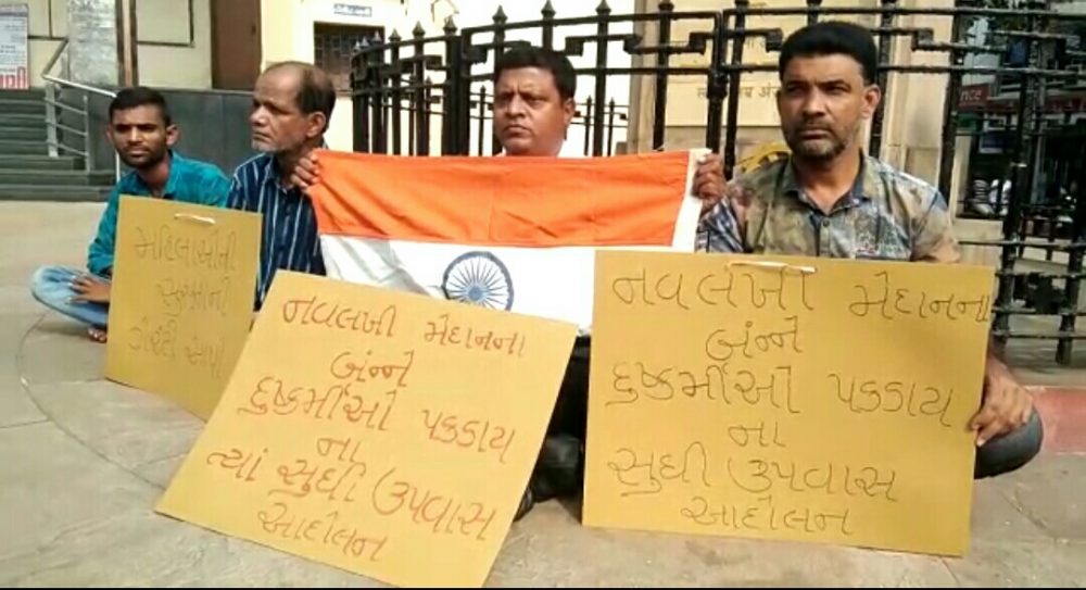 વડોદરામાં નવલખી મેદાનમાં સગીરા સાથેની દુષ્કર્મ ધટનામાં 3 દિવસ થયા છતાં નરાધમો નહીં ઝડપાતા સામાજિક કાર્યકર્તાએ નરાધમો જ્યાં સુધી નહીં ઝડપાઈ ત્યાં સુધી ગાંધીનગર ગૃહ ખાતે આમરણ ઉપવાસ પર ઉતરી ગયા છે.