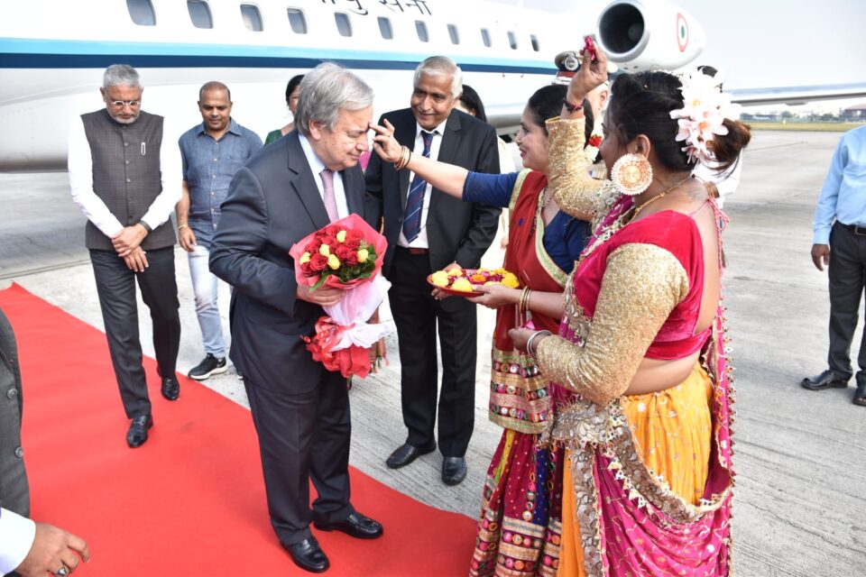 ગુજરાતની બે દિવસની મુલાકાતે પધારેલ સંયુક્ત રાષ્ટ્ર સંઘના(UNO) મહાસચિવ શ્રીયુત એન્ટોનીયો ગુટેરેસનું વડોદરા એરપોર્ટ ખાતે પ્રોટોકોલ મંત્રી જગદીશ પંચાલ, મેયર કેયુર રોકડીયા, સાંસદ રંજનબેન ભટ્ટ, કલેકટર એ.બી.ગોર, પોલીસ કમિશનર ડો.સમશેરસિંઘ ઉષ્માસભર આવકાર કર્યો હતો.