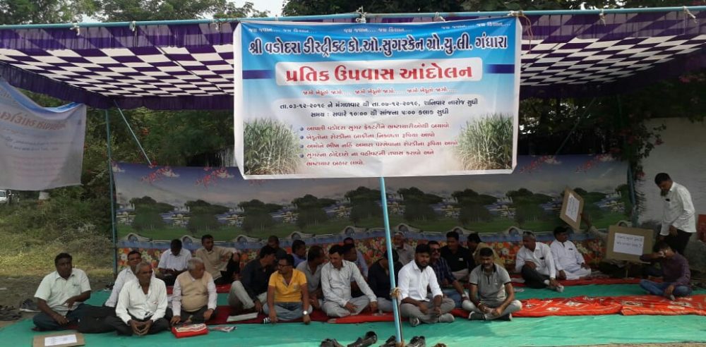 વડોદરા સુગરના સભાસદોના ત્રણ દિવસના પ્રતિક ઉપવાસનો આરંભ.