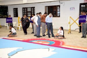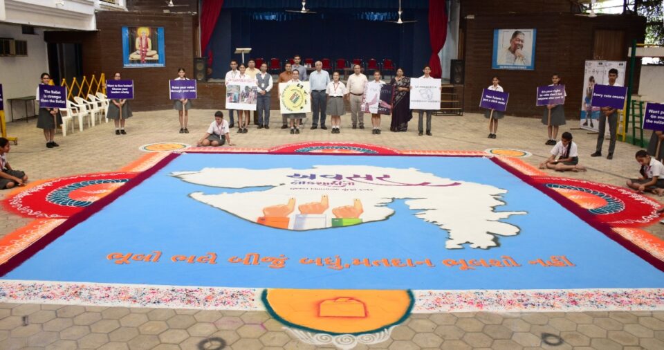 ગુજરાત વિધાનસભાની ચૂંટણીમાં મહત્તમ મતાદન માટે વડોદરા જિલ્લા ચૂંટણી તંત્ર દ્વારા આરંભવા આવેલું અવસર અભિયાન વેગવંતુ બનવાની સાથે વિવિધ શૈક્ષણિક સંસ્થાઓ પણ તેમાં સહભાગી બની રહી છે. આજે સમા વિસ્તારમાં આવેલા ઊર્મિ સ્કૂલ ખાતે વિશાળ રંગોળી દોરીને મતદાર જાગૃતિ માટે સંદેશો આપવામાં આવ્યો હતો. જિલ્લા ચૂંટણી અધિકારી અતુલ ગોર તથા અવસરના નોડલ અધિકારી ડો.બી.એસ. પ્રજાપતિએ આ રંગોળી નિહાળી છાત્રોને બિરદાવ્યા હતા.