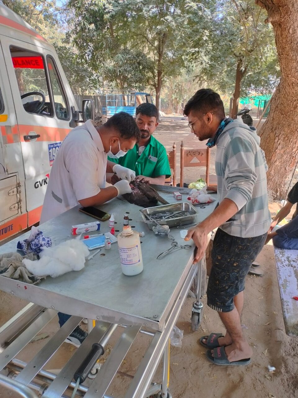 વડોદરા શહેરમાં મકરપુરા, માંડવી ગેટ, સયાજી બાગ, બાળભવન ફોરેસ્ટ કચેરી, કલાદર્શન ચાર રસ્તા અને હરિનગર ચાર રસ્તા ગોત્રી સહિત પાંચ ફરતા પશુ દવાખાના અને બંને કરુણા એમ્બ્યુલન્સના વેટનરી ડોક્ટર ડો. ચિરાગ પરમાર ડો. મેઘા પટેલ , ડો.બીજલ ત્રિવેદી ડો.પાર્થ ગજ્જર, ડો. સતીશ પાટીદાર, ડો.પુષ્પેન્દ્ર પુવાર, ડો. પ્રજ્ઞા પ્રકાશ મિશ્રા, ડો. રવિ પટેલ અને તેમની ટીમ ભેગા મળીને કરુણા અભિયાનના પહેલા જ દિવસે ૧૯ ઘાયલ પક્ષીઓની સારવાર કરી તેમના જીવ બચવામાં મહત્વની ભૂમિકા ભજવી છે.