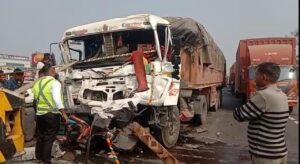 કહેવાય રહ્યું છે કે આગળ ચાલતી ટ્રક ચાલકે અચાનક બ્રેક મારતા ટ્રકની પાછળ ચાલતું કન્ટેનર ટ્રક પાછળ ધડાકાભેર અથડાયું હતું. કન્ટેનરના ચાલક – ક્લીનર કેબિનમાં ફસાયા હતા. જેના પગલે ભારે દોડધામ મચી જવા પામી હતી. અકસ્માતની જાણ થતા એન એચ એ આઇ ના કર્મીઓ ક્રેન સાથે ઘટના સ્થળે દોડી ગયા હતા. ભારે જહેમત બાદ ચાલક તથા કલીનરને બહાર કાઢવામાં આવ્યા હતા. અકસ્માતને પગલે ભારે ટ્રાફિક જામ સર્જાયો હતો.