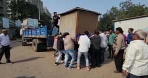 વડોદરા મ્યુનિસિપલ કોર્પોરેશન દ્વારા છેલ્લા કેટલાક દિવસથી ઢોર વાડાના ગેરકાયદે દબાણો તેમજ રસ્તાને નડતરરૂપ હોય તેવા હંગામી દબાણો હટાવવાની કામગીરી હાથ ધરવામાં આવી છે કોર્પોરેશનની દબાણ શાખાની ટીમ તેમજ ટાઉન પ્લાનિંગ વિભાગની ટીમ દ્વારા દબાણ હટાવોની કામગીરી આજે છાણી વિસ્તારમાં શમશેરા ફ્લેટ પાસેથી પસાર થતી નર્મદા કેનાલની આસપાસના ગ્રીનબેલ્ટના પ્લોટોમાં ગેરકાયદે રીતે છેલ્લા 22 વર્ષથી મંદિર બાંધીને તેની આડમાં ગોડાઉન તેમજ પુજારીની રૂમ વગેરે બાંધકામ કરી દઈ અને આજુબાજુના ગરીબ લોકો પાસેથી ભાડું ઉઘરાવનાર વ્યક્તિ સામે કોર્પોરેશનને આજે કાર્યવાહી કરી મંદિર સિવાયના આજુબાજુના ગેરકાયદે દબાણો તોડી પાડ્યા હતા સાથે સાથે નર્મદા કેનાલની આજુબાજુમાં ગેરકાયદે બંધાયેલા 40 થી વધુ ઝુપડા પણ તોડી પાડવામાં આવ્યા હતા.