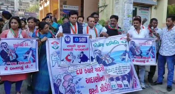 ભારતના ઉદ્યોગ જગતમાં હાહાકાર મચાવનાર અદાણી સામે હવે કોંગ્રેસ મેદાનમાં ઉતર્યું છે, જે અંતર્ગત વડોદરા ખાતે કોંગ્રેસ દ્વારા વિરોધ પ્રદર્શન યોજવામાં આવ્યું હતું દરમિયાન સયાજીગંજ પોલીસે વિરોધ પ્રદર્શન કરી રહેલા શહેર કોંગ્રેસ પ્રમુખ સહિત 10 કરતા વધુ લોકોની અટકાયત કરી હતી, કોંગ્રેસનો આક્ષેપ છે કે હાલમાં આખો દેશ ખાસ કરીને મધ્યમ વર્ગ ભાજપ સરકારની રીતિ અને નીતિઓથી ચિંતિત છે. સામાન્ય માણસની મહેનતની બચતના ખર્ચે ભાજપ સરકાર તેમના નજીકના મિત્રો અને પસંદગીના અબજોપતિઓને ફાયદો થાય તેવી નીતિ અપનાવી રહી છે. અદાણી જૂથમાં એલઆઈસી અને એસબીઆઈ જેવી સરકારી સંસ્થાઓના અત્યંત જોખમી વ્યવહારો અને રોકાણોએ છેલ્લા કેટલાક દિવસોમાં કરોડો ભારતીયોના મહેનતની કમાણી કરેલી બચતને જોખમમાં મૂકી છે જેના વિરોધમાં કોંગ્રેસ મેદાનમાં ઉતરી છે અને “ઇડી ચઢે અદાણી ના ઘર ની સીડી’ તેવી માંગ સાથે ધરણા પ્રદર્શન સાયજીગંજ વિસ્તારમાં યોજયું હતું જ્યાં પોલીસે વિરોધ પ્રદર્શન કરી રહેલા વડોદરા શહેર કોંગ્રેસ પ્રમુખ સહિત 10 લોકોની અટકાયત પણ કરવામાં આવી હતી.