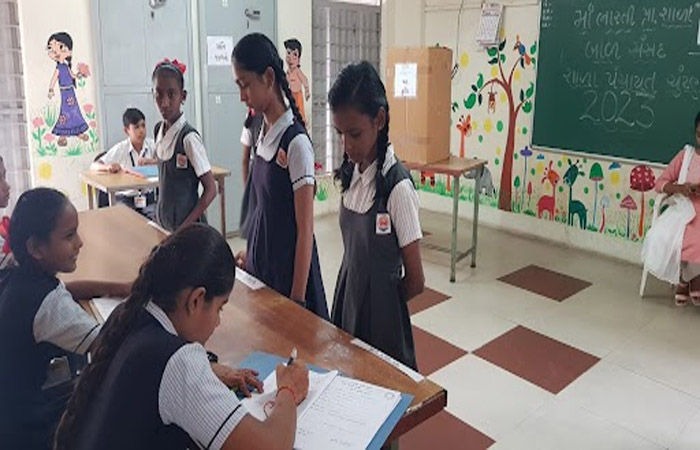 વડોદરા નગર પ્રાથમિક શિક્ષણ સમિતિ સંચાલિત સયાજીગંજ વિસ્તારની માઁ ભારતી પ્રાથમિક શાળા ખાતે બાળસાંસદની ચૂંટણી-2023 નું આયોજન કરવામાં આવ્યું હતું.