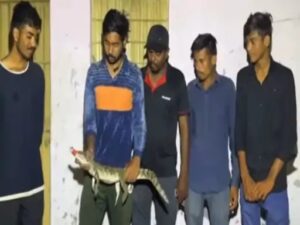 વડોદરાના વાઘોડિયા તાલુકાના કુમેઠા ગામે આવેલા એક મકાનના મુખ્ય દરવાજા બહાર મગરનું બચ્ચું આવી જતા મકાનમાં રહેતા લોકોનો જીવ તાળવે ચોંટી ગયો હતો. જોકે, જીવદયા સંસ્થાની ટીમે સફળતાપૂર્વક મગરના બચ્ચાનું રેસ્ક્યૂ કરતા લોકોએ રાહતનો શ્વાસ લીધો હતો.