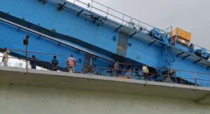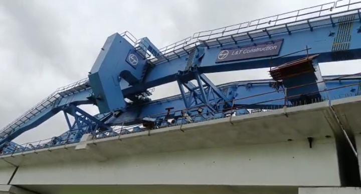 કરજણના કંબોલા ગામની સીમમાંથી પસાર થતાં રેલવે પ્રોજેકટની કામગીરી દરમિયાન મહાકાય ક્રેન બ્રીજ પર તૂટી.