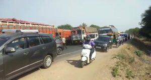વડોદરા જિલ્લામાંથી પસાર થતા રાષ્ટ્રીય ધોરીમાર્ગ નંબર 48 પર વરણામા હાઇવે બસ સ્ટેન્ડ પાસે અચાનક દ્રાક્ષ ભરેલો ટેમ્પો પલ્ટી ખાઇ જતા પાછળથી આવી રહેલા કન્ટેનર પણ પલ્ટી જતા ભારે ટ્રાફિક જામ સર્જાયો હતો.