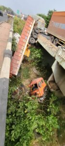 ટેલર નીચે પડતાં ટ્રેલરના કંડકટરનો આબાદ બચાવ થવા પામ્યો હતો. જ્યારે ચાલક કેબિનમાં ફસાઈ ગયો હતો. જે અંગેની જાણ કરજણ ફાયર વિભાગને કરવામાં આવતાં તાબડતોડ કરજણ ફાયર વિભાગની ટીમ ઘટના સ્થળે પહોંચી ભારે જહેમત બાદ ચાલકને બહાર કાઢ્યો હતો. વરણામા પોલીસે ટ્રેલરના ચાલકને સારવાર અર્થે હોસ્પિટલ ખસેડી આગળની કાર્યવાહી હાથ ધરી હોવાનું સૂત્રો દ્વારા જાણવા મળ્યું હતું. ને.હા.48 પર પોર નજીક આવતાં ત્રણ ટ્રેક વાળો હાઇવે ઢાઢર નદીના બ્રિજ પાસે બે ટ્રેકમાં ફેરવાઈ જતો હોય છે. જેથી વહેલા નીકળવાની લ્હાયમાં વાહનચાલકો વાહનનો કાબૂ ગુમાવી દેતાં બ્રીજની રેલીંગ તોડી નદીમાં ખાબકતા હોવાની ઘટનાઓ બનતી હોવાની લોકમુખે ચર્ચાઓ થઈ રહી છે.