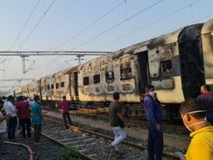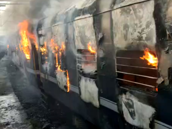 વડોદરામાં રેલ્વે યાર્ડમાં ઊભેલી મેમુ ટ્રેનમાં રહસ્યમય રીતે ભીષણ આગ : 3 ડબ્બા બળીને ખાખ..!