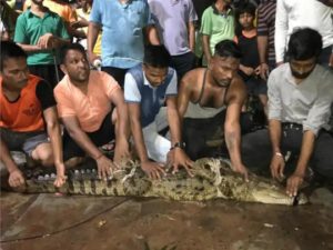 સ્થળ પર પહોંચેલી રેસ્ક્યૂ ટીમે એક સાડા છ ફૂટનો મગર મકાનો પાસે જોવા મળ્યો હતો. સાડા છ ફૂટ લાંબા મગરને જોતા લોકોમાં ગભરાટ ફેલાઇ ગયો વાઇલ્ડ લાઇફ રેસ્ક્યૂ ટ્રસ્ટના પ્રમુખ અરવિંદ પવારે જણાવ્યું હતું કે, વરસાદ પડવાના કારણે સલાટવાડા પાસે આવેલા નવાગઢ મહોલ્લા પાસે આવેલા વિશ્વામિત્રી નાળામાંથી આ મગર બહાર આવી ગયો હતો અને તે બહાર નીકળીને લોકોના ઘર પાસે આવી ગયો હતો.
