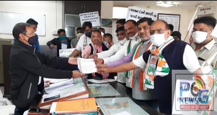 કોરોનામાં મૃત્યુ પામનાર વ્યક્તિના પરિવારને રૂપિયા 4 લાખ વળતર આપવાની માંગ સાથે તાલુકા કોંગ્રેસ સમિતી દ્વારા તાલુકા મામલતદારને આવેદન પત્ર આપવામાં આવ્યું હતું. કોંગ્રેસ સમિતી દ્વારા આપવામાં આવેલા આવેદન પત્રમાં સરકારી હોસ્પિટલોમાં કોઇપણ પ્રકારની સુવિધા ન હોવાનો આક્ષેપ કરવામાં આવ્યો છે. મામલતદારને આવેદન પત્ર આપવા માટે જિલ્લા કોંગ્રેસ પ્રમુખ, તાલુકા કોંગ્રેસ સમિતીના પ્રમુખ સહિત કાર્યકરો વિવિધ માંગ સાથેના પ્લેકાર્ડ સાથે જોડાયા હતા.