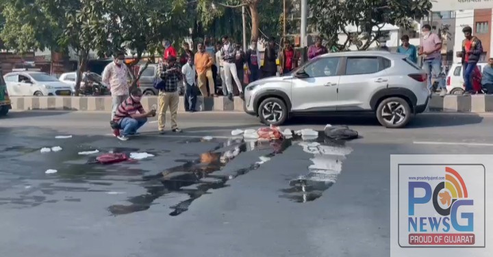 સમગ્ર ઘટના અંગે પ્રાપ્ત વિગતો અનુસાર, આજરોજ બપોરના ગાળામાં એક યુવક એક્સેસ ટુ વ્હીલર લઇને એરપોર્ટ સર્કલથી એલ. એન્ડ ટી. સર્કલ તરફ જઇ રહ્યો હતો. યુવકની ટુ વ્હીલર પર બે પોટલા રાખેલા હોય છે. સુત્રના જણાવ્યા પ્રમાણે યુવકનું ટુ વ્હીલર બ્રિજ ઉતરીને નીચે આવતા જ રખડતા ઢોરની અડફેટે તે આવી જાય છે. વાહનની સ્પીડ એટલી હોય છે કે તે વાહન પર કાબુ રાખી શકતો નથી. અને તેનું બેલેન્સ બગડે છે. અને તેની પાસે રાખેલા પોટલાઓ રસ્તા પર પડી જાય છે. આ સાથે પોટલામાં મુકી રાખેલી દેશી દારૂની પોટલીઓ રસ્તા પર વિખેરાઇ જાય છે. તેટલામાં તો યુવક જગ્યા પરથી નાસી છુટે છે. કેટલીક પોટલીઓ તો રસ્તામાં ફાટી જવાને કારણે આખાય રસ્તા પર દુર્ગંધ મારે છે. તેવા સમયે એક મહિલા લોકોને આ સ્થળથી દુર રહીને જવા માટે વિનંતી કરતી જોવા મળે છે.