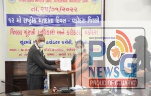 વડોદરા, વિ.સં. ૨૦૭૮, પોષ વદ ૭/૮ (મંગળવાર) વડોદરામાં જિલ્લા ચૂંટણી અધિકારી અને કલેકટર અતુલ ગોરના અધ્યક્ષસ્થાને ૧૨ મા રાષ્ટ્રીય મતદાતા દિનની જિલ્લા કક્ષાની ઉજવણી કરવામાં આવી હતી.