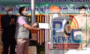 જ્યાં તેમણે પરંપરા મુજબ ૯ વાગ્યે તિરંગાને લહેરાવ્યો હતો. બાદમાં પોલીસ બેંડ પર રાષ્ટ્રીય ગીતની સૂરાવલી સાથે ધ્વજવંદન કરવામાં આવ્યું હતું. તત્પશ્ચાયત, આ ત્રણેય મહાનુભાવોએ ખુલી જીપમાં બેસી પરેડનું નિરીક્ષણ કર્યું હતું અને આમંત્રિતોનું અભિવાદન ઝીલ્યું હતું બાદમાં મંત્રીએ નાગરિકોને શુભકામનાઓ આપતા પ્રજાજોગ સંદેશામાં જણાવ્યું હતું કે, આજનો દિવસ દેશ-વિદેશમાં રહેતા તમામ ભારતીયો માટે અત્યંત ગૌરવપૂર્ણ દિવસ છે. આજના પાવન દિને ૭૨ વર્ષ પહેલા આપણે લોકતાંત્રિક ગણરાજ્યનો સ્વીકાર કર્યો હતો. આજે આપણો દેશ વિશ્વની ત્રીજી મહાસત્તા તરીકે ઉભરી રહ્યો છે.પ્રધાનમંત્રી નરેન્દ્રભાઇ મોદીના સબળ, સશક્ત અને દિર્ધદ્રષ્ટિપૂર્ણ નેતૃત્વના પરિણામે વિશ્વભરમાં ભારતનો ડંકો વાગી રહ્યો છે. અનેક કિર્તિમાનો સ્થાપી આપણો દેશ સુરાજ્યની દિશામાં દ્રઢતાપૂર્વક આગળ વધી રહ્યો છે. દ્રઢ રાજકીય ઇચ્છા શક્તિ, સાતત્યપૂર્ણ નેતૃત્વ અને જનશક્તિના સાક્ષાત્કારના ત્રિવેણી સંગમથી આપણે પ્રતિદિન વિકાસના નવતર સોપાનો સર કરી રહ્યાં છીએ. આત્મનિર્ભર ગુજરાતથી આત્મનિર્ભર ભારતની આ યાત્રામાં મુખ્યમંત્રી શ્રી ભૂપેન્દ્રભાઇ પટેલના ઊર્જાવાન નેતૃત્વમાં આપણે મક્કમતાથી આગળ વધી રહ્યા છીએ. રાજ્યના પ્રત્યેક નાગરિકને ઘર આંગણે ગુણવત્તાસભર આરોગ્ય સેવાઓ મળે અને સ્વસ્થ, સલામત અને સુરક્ષીત ગુજરાત રહે એ માટે સરકાર દિવસ રાત મહેનત કરીને નિષ્ઠાપૂર્વક જનતાની પડખે ખભે ખભા મિલાવીને ઊભા રહેવાવાળા છીએ. પ્રભારી મંત્રીએ કહ્યું કે છેલ્લા દોઢ-બે વર્ષથી ગુજરાત સહિત સમગ્ર વિશ્વ કોરોનાની મહામારી સામે બાથ ભીડી રહ્યું છે. ભારત દેશે ૧૫૦ કરોડ ઉપરાંતના રસીકરણની ઐતિહાસિક સિધ્ધિ હાંસલ કરી છે, કોરોનાને નાથવાના જંગમાં ઈતિહાસ સર્જ્યો છે. વિશ્વના આ સૌથી મોટા રસીકરણ અભિયાનમાં ગુજરાત મક્કમતાથી અગ્રેસર રહ્યું છે. રાજ્યમાં કોરોનાની મહામારી સામે રોગપ્રતિકારક શક્તિ વધે, સંક્રમણ અટકે તેમ જ મહામારી સામે રક્ષણ મળે તે ઉદ્દેશ્યથી રાજ્યમાં છેલ્લા ૧૨૧ દિવસમાં ૫૩.૮૭ લાખથી વધુ લોકોને કોવિડ રસીકરણનો પ્રથમ ડોઝ તથા ૨.૩૩ કરોડ લોકોને દ્વિતિય ડોઝ આપવામાં આવ્યો છે. હાલ કુલ ૪.૭૭ કરોડ લોકોને કોવિડ રસીકરણનો પ્રથમ ડોઝ તથા ૪.૩૬ કરોડ લોકોને દ્વિતિય ડોઝ આપવામાં આવ્યો છે. તેમણે જણાવ્યું કે, સુશાસનમાં ગુજરાતની અગ્રેસરતા અનોખી છે. કોરોનાને કારણે સ્પર્ધાત્મક પરીક્ષાનું આયોજન ન થઈ શકવાને કારણે યુવાનો નોકરીની તકોથી વંચિત ન રહી જાય એ માટે ભરતી માટેની વયમર્યાદામાં ૧ વર્ષની છૂટછાટ આપવાનો ક્રાંતિકારી યુવાહિતલક્ષી નિર્ણય અમે કર્યો છે.