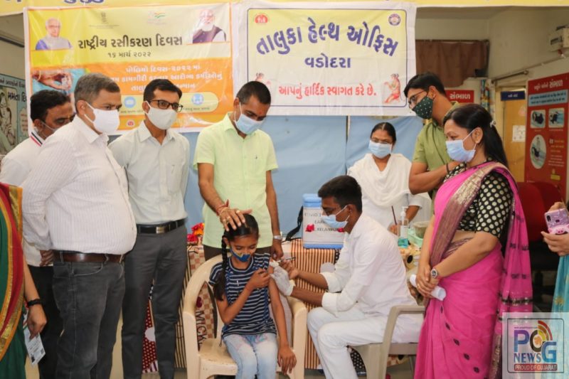 વડોદરા નજીક કેલનપુર પ્રાથમિક આરોગ્ય કેન્દ્ર ખાતે આજે રાષ્ટ્રીય રસીકરણ જાગૃતિ દિવસની ઉજવણીની સાથે રાજ્ય સરકારના આરોગ્ય વિભાગની સૂચના પ્રમાણે ૧૨ થી ૧૪ વર્ષની ઉંમરના કિશોર કિશોરીઓને કોરોના સામે રક્ષણ આપતી રસી મૂકવાની શરૂઆત કરવામાં આવી હતી.